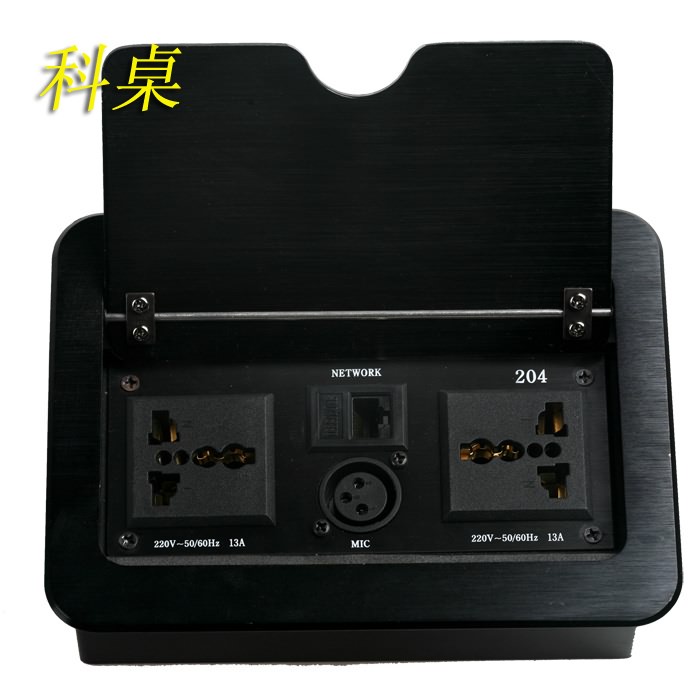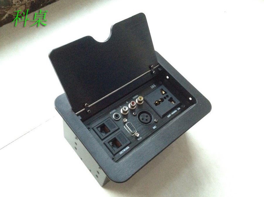 翻蓋多功能桌面插座是目前市場上較為新款、實用的、美觀的多功能桌面線盒,此款多功能桌面線盒適用于辦公會議桌、班臺、洽談桌面、個人辦公桌等。作為會議辦公桌面線盒,本系列的翻蓋多功能桌面插座面板采用高質量鋁合金材質,面板表面采用陽極化精密度鋁拉絲處理,手感光滑細膩,外觀精美高檔,可以很容易的安裝嵌入到任何會議桌面任何位置不影響桌面整體效果。