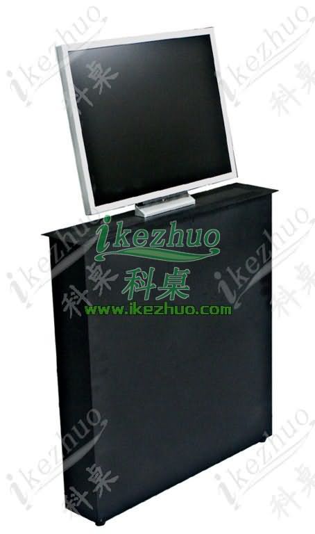 2、在液晶屏的上升過程中,裝飾面板自動打開,液晶屏直立伸出桌面并自動接通電源,自動仰成一定角度;